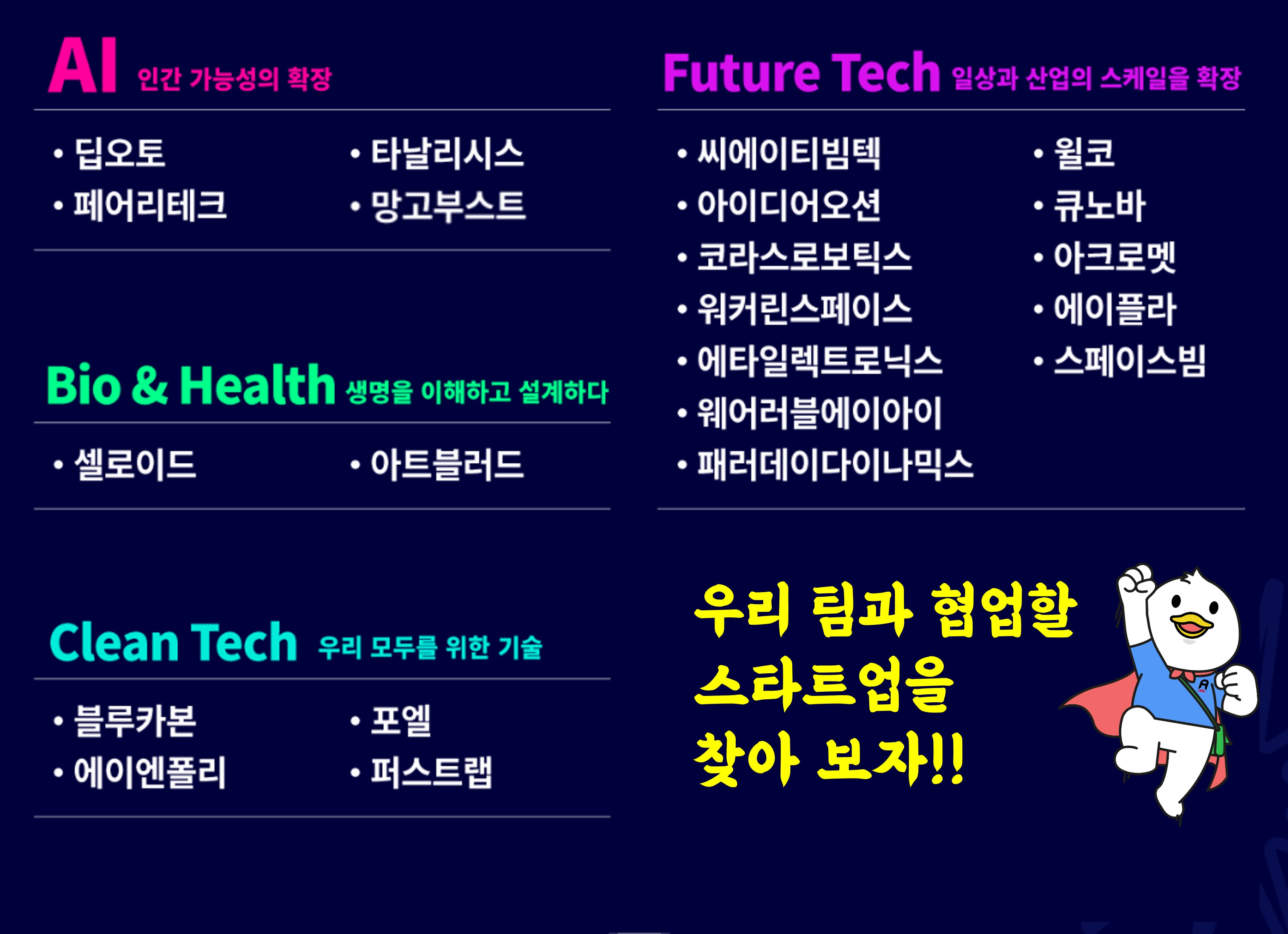 스타트업과 이런 일도 할 수 있구나?!!! 다양한 아이디어를 얻을 수 있을거에요!