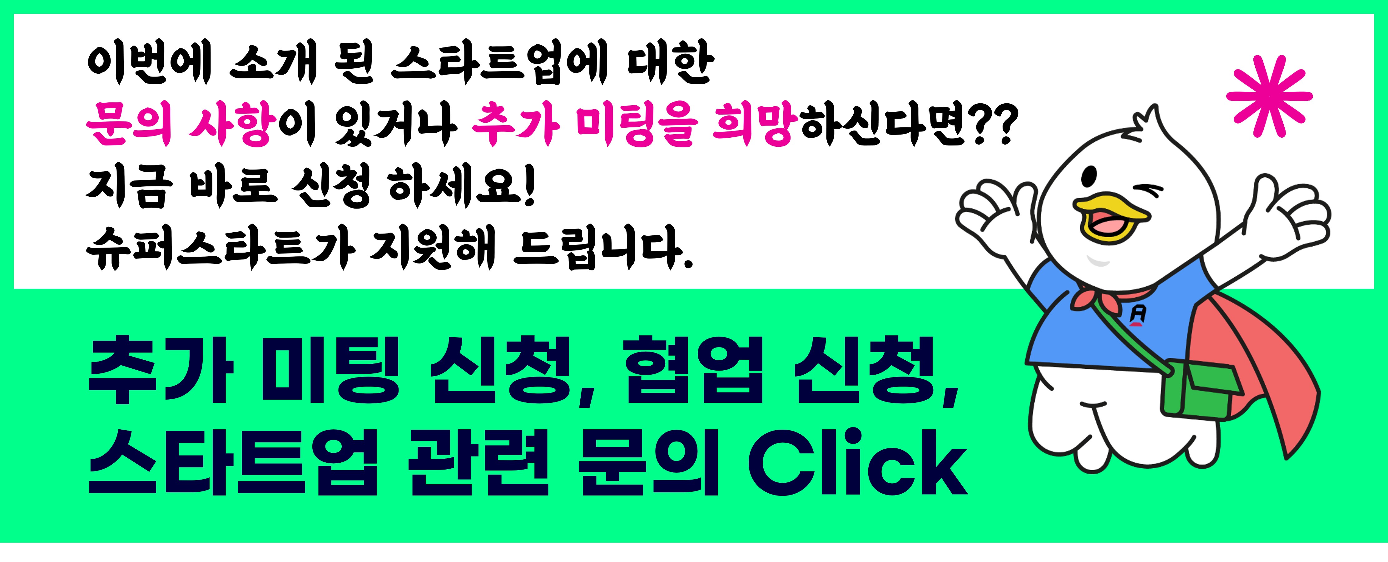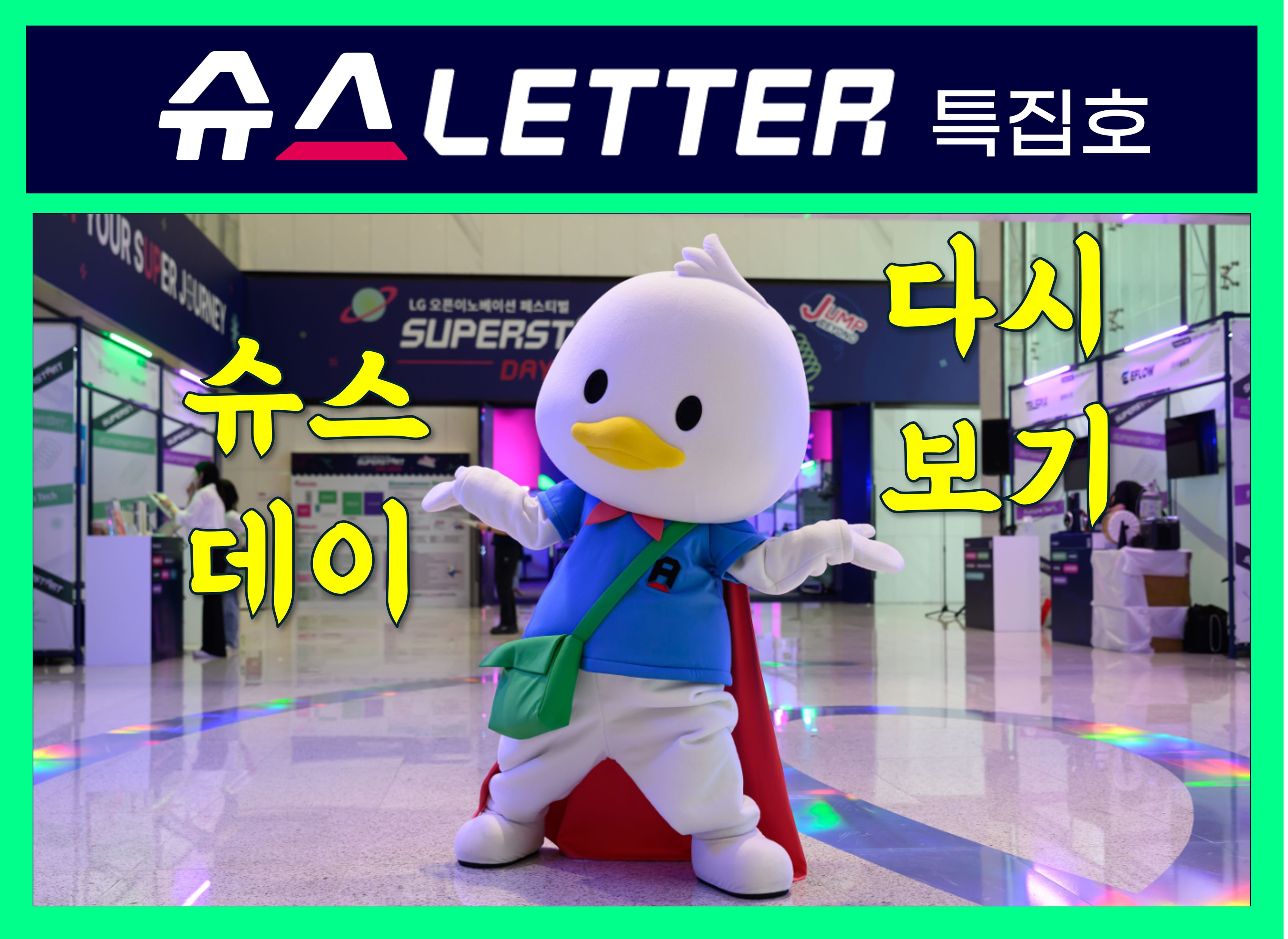 잠시 책상에서 벗어나 LG와 스타트업 생태계가 함께 새로운 미래 혁신을 탐험했던 슈퍼스타트 데이 2025. 매일 똑같은 자리에서 똑같은 고민을 하기 보다는 슈스 데이같은 기회를 통해 스타트업들의 새로운 아이디어를 만나고, 혁신의 영감을 얻어 보세요. 그리고 도전하세요! 슈퍼스타트가 언제나 여러분들의 새로운 도전을 응원합니다. 스타트업과의 소통과 협업에 관심이 있다면 언제든 슈퍼스타트로 연락 주시구요, 그럼 내년 슈스데이에서 또 만나요~!!! |