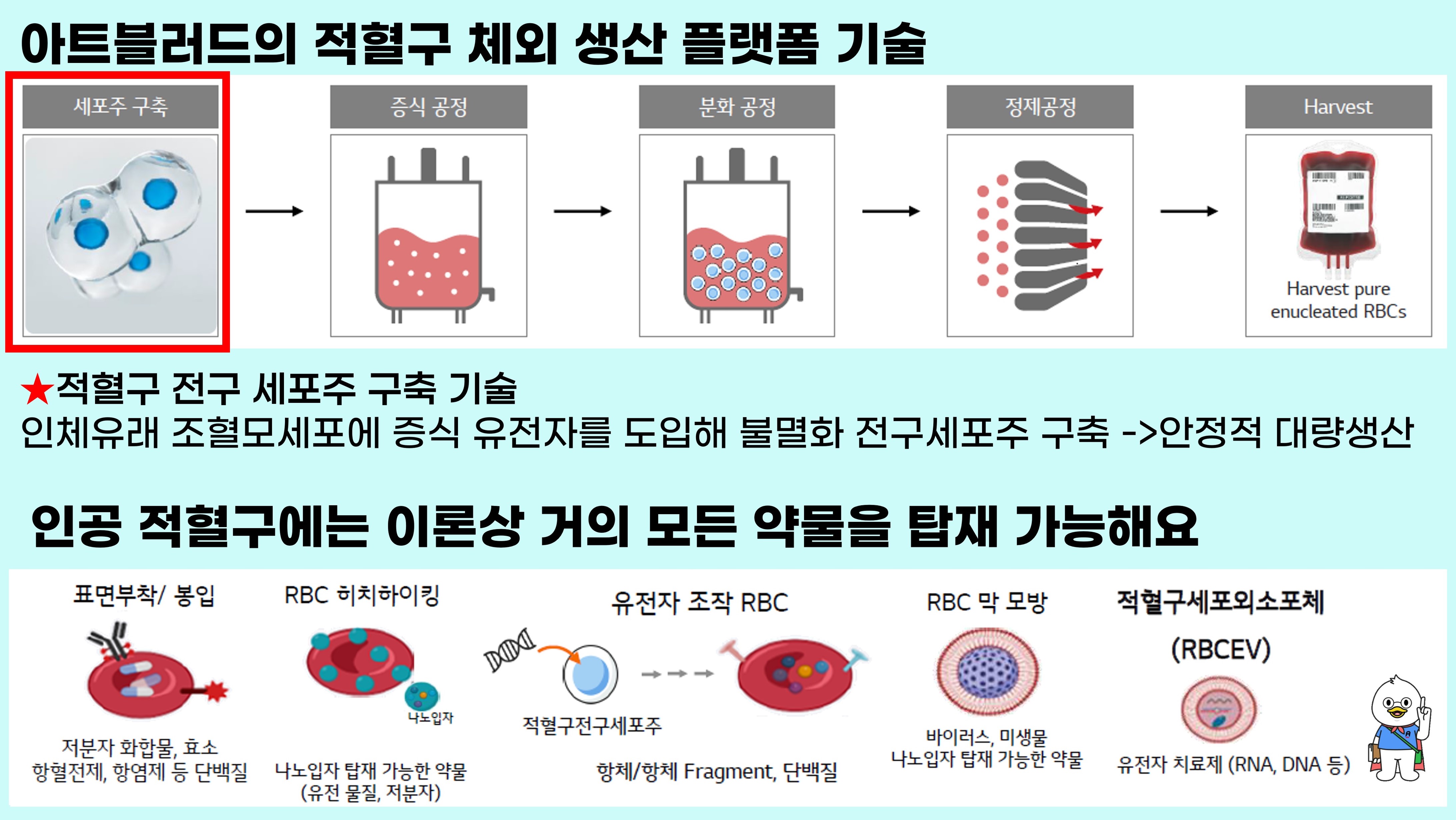 적혈구를 안정적으로 대량 생산하게 되면, 이 위에 다양한 단백질이나 약물, 나노물질을 얹어 활용할 수 있는 방법이 무궁무진해 진다고 해요! 상세 내용이 궁금하다면? 언제든 슈퍼스타트로 문의 주세요! |